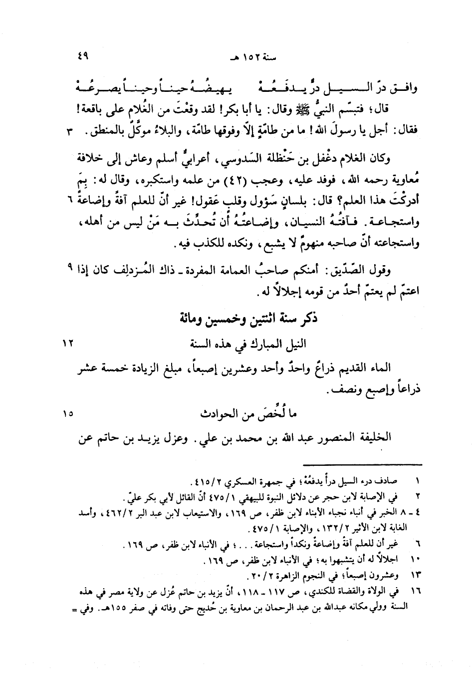 وكان الغلام دغفل بن حنظلة السدوسي، أعرابيّ أسلم وعاش إلى خلافة معاوية رحمه الله، فوفد عليه، وعجب (42) من علمه واستكبره، وقال له: بم أدركت هذا العلم؟ قال: بلسان سؤول وقلب عقول! غير أنّ للعلم آفة وإضاعة واستجاعة. فآفته النسيان، وإضاعته أن تحدّث به من ليس من أهله، واستجاعته أنّ صاحبه منهوم لا يشبع، ونكده للكذب فيه.