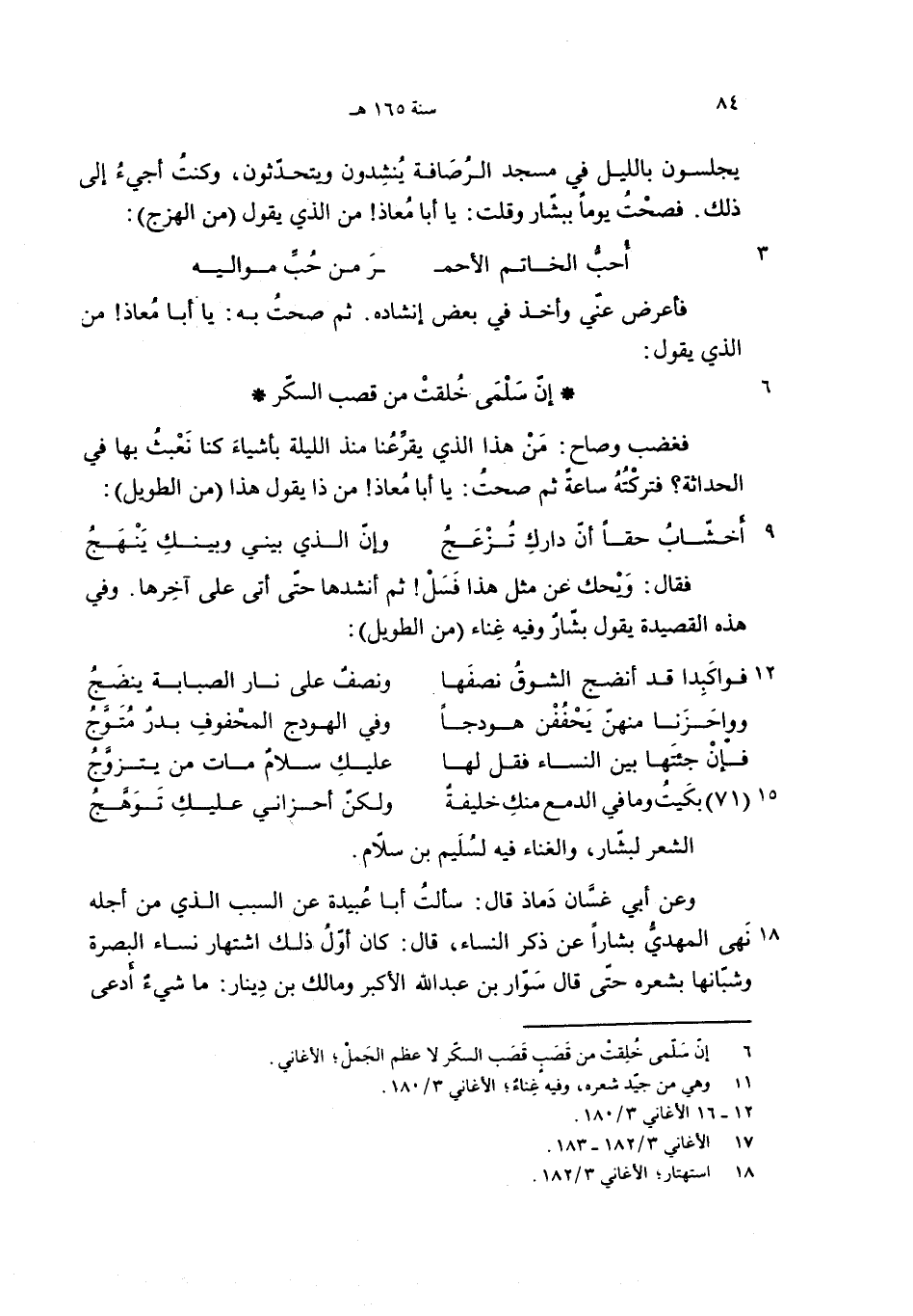 الشعر لبشّار، والغناء فيه لسليم بن سلاّم.