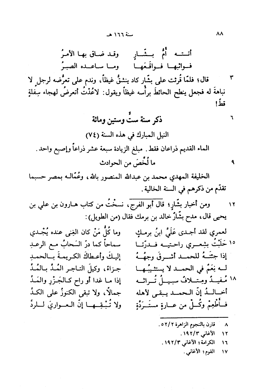 ومن أخبار بشّار؛ قال أبو الفرج، نسخت من كتاب هارون بن علي بن يحيى قال، مدح بشّار خالد بن برمك فقال (من الطويل):