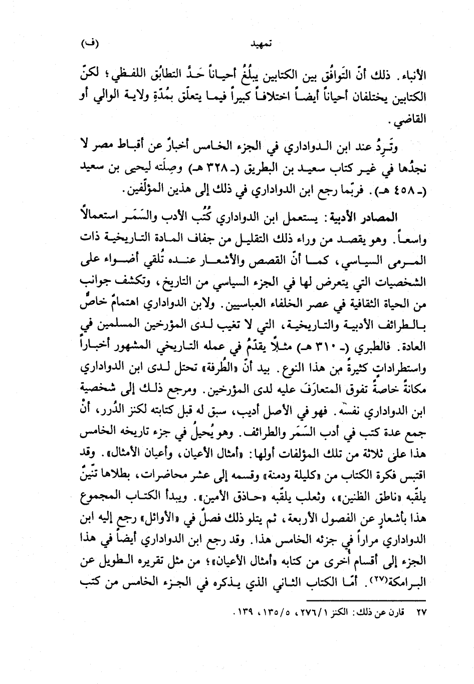 وترد عند ابن الدواداري في الجزء الخامس أخبار عن أقباط مصر لا نجدها في غير كتاب سعيد بن البطريق (-328 هـ) وصلته ليحيى بن سعيد (-458 هـ).فربّما رجع ابن الدواداري في ذلك إلى هذين المؤلّفين.