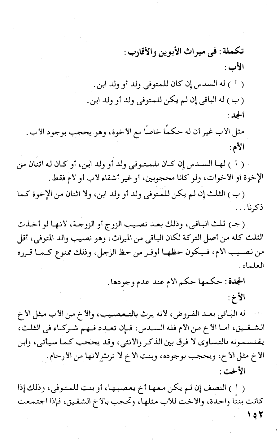 (ب) الثلث إِن لم يكن للمتوفى ولد او ولد ابن، ولا أثنان من الإِخوة كما