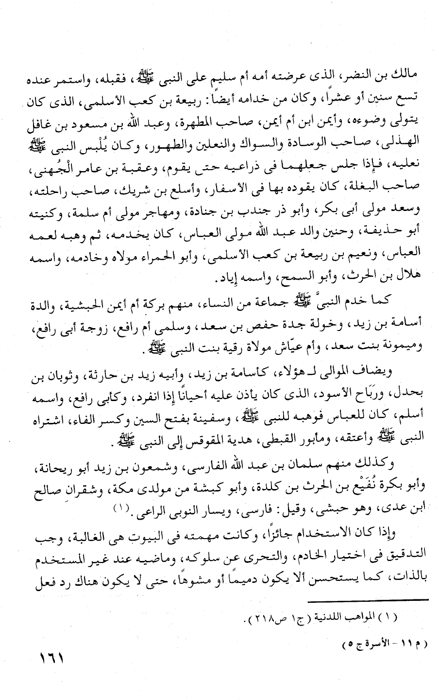 تسع سنين أو عشرَا، وكان من خدامه أيضَا: ربيعة بن كعب الا سلمى، الذى كان