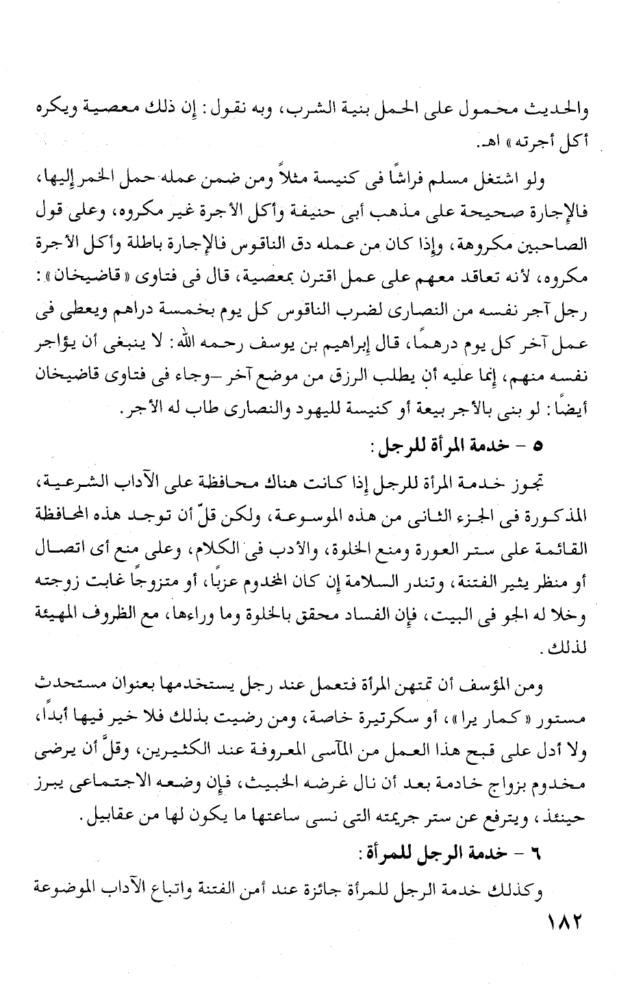 ولو اشتغل مسلم فراشًا فى كنيسة مثلاً ومن ضمن عمله حمل الخمر إِليها،