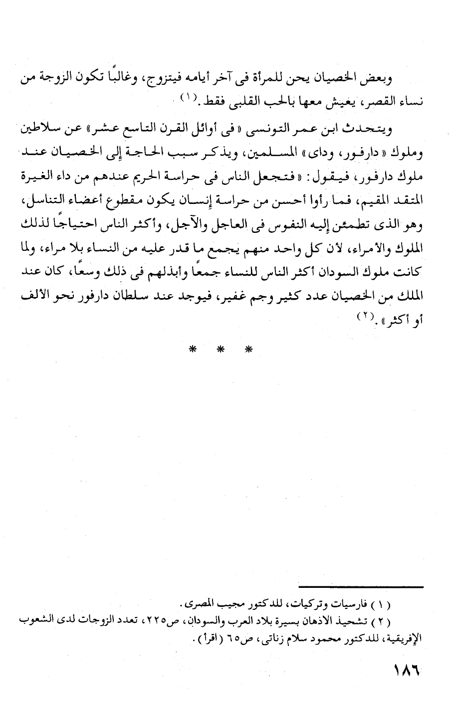 وملوك " دارفور، ودأى " المسلمين، ويذكر سبب الحاجة إِلى الخصيان عند