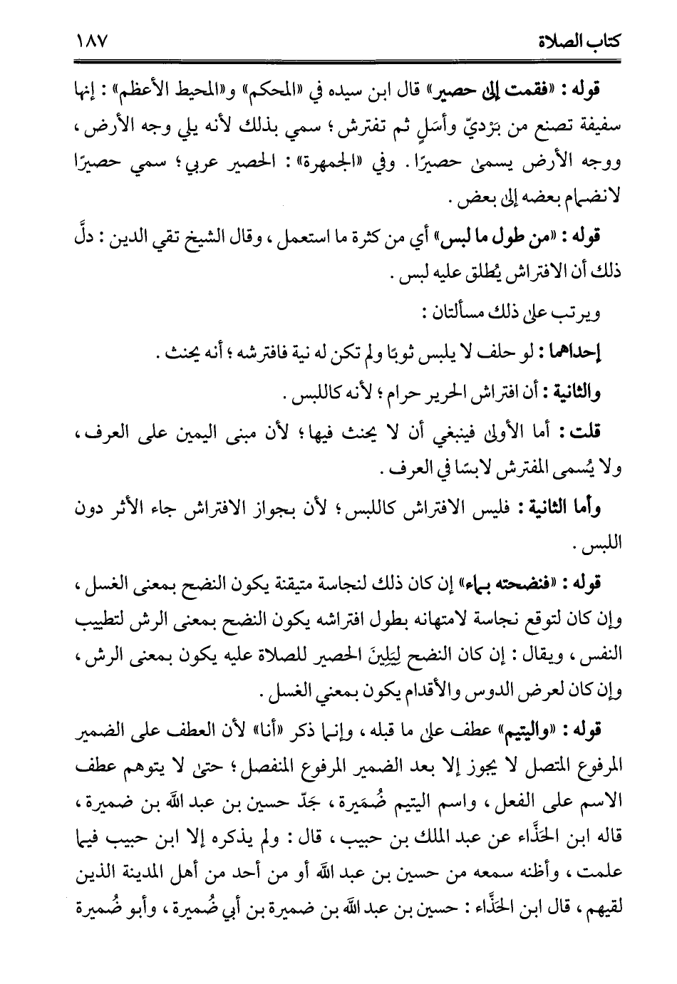قوله: "فقمت إلى حصير" قال ابن سيده في "المحكم" و"المحيط الأعظم": إنها سفيفة تصنع من بَرْديّ وأسَلٍ ثم تفترش؛ سمي بذلك لأنه يلي وجه الأرض، ووجه الأرض يسمى حصيرًا. وفي "الجمهرة": الحصير عربي؛ سمي حصيرًا لانضمام بعضه إلى بعض.