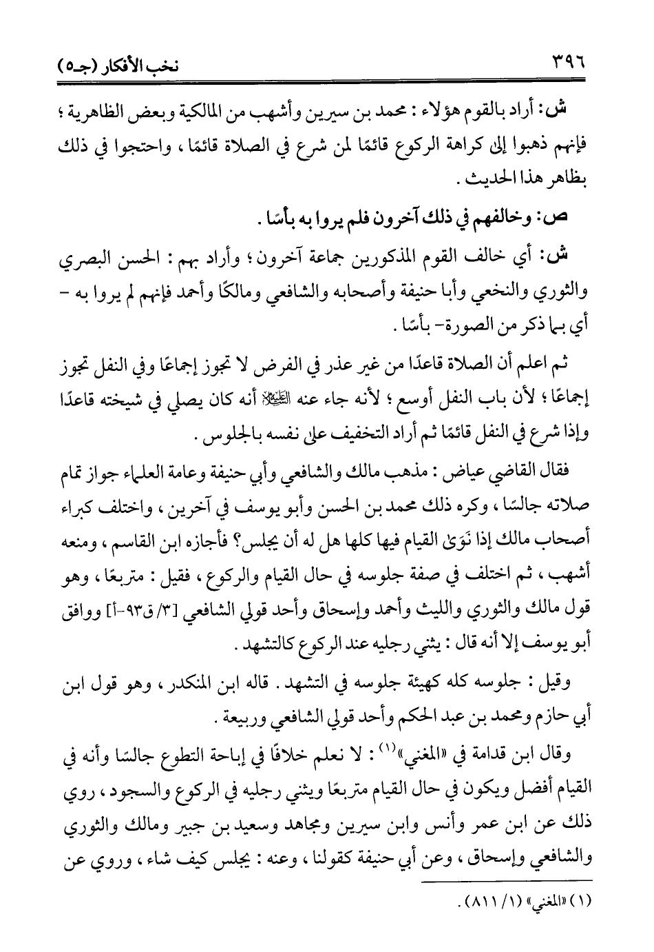 ش: أراد بالقوم هؤلاء: محهمد بن سيرين وأشهب من المالكية وبعض الظاهرية؛ فإنهم ذهبوا إلى كراهة الركوع قائمًا لمن شرع في الصلاة قائمًا، واحتجوا في ذلك بظاهر هذا الحديث.