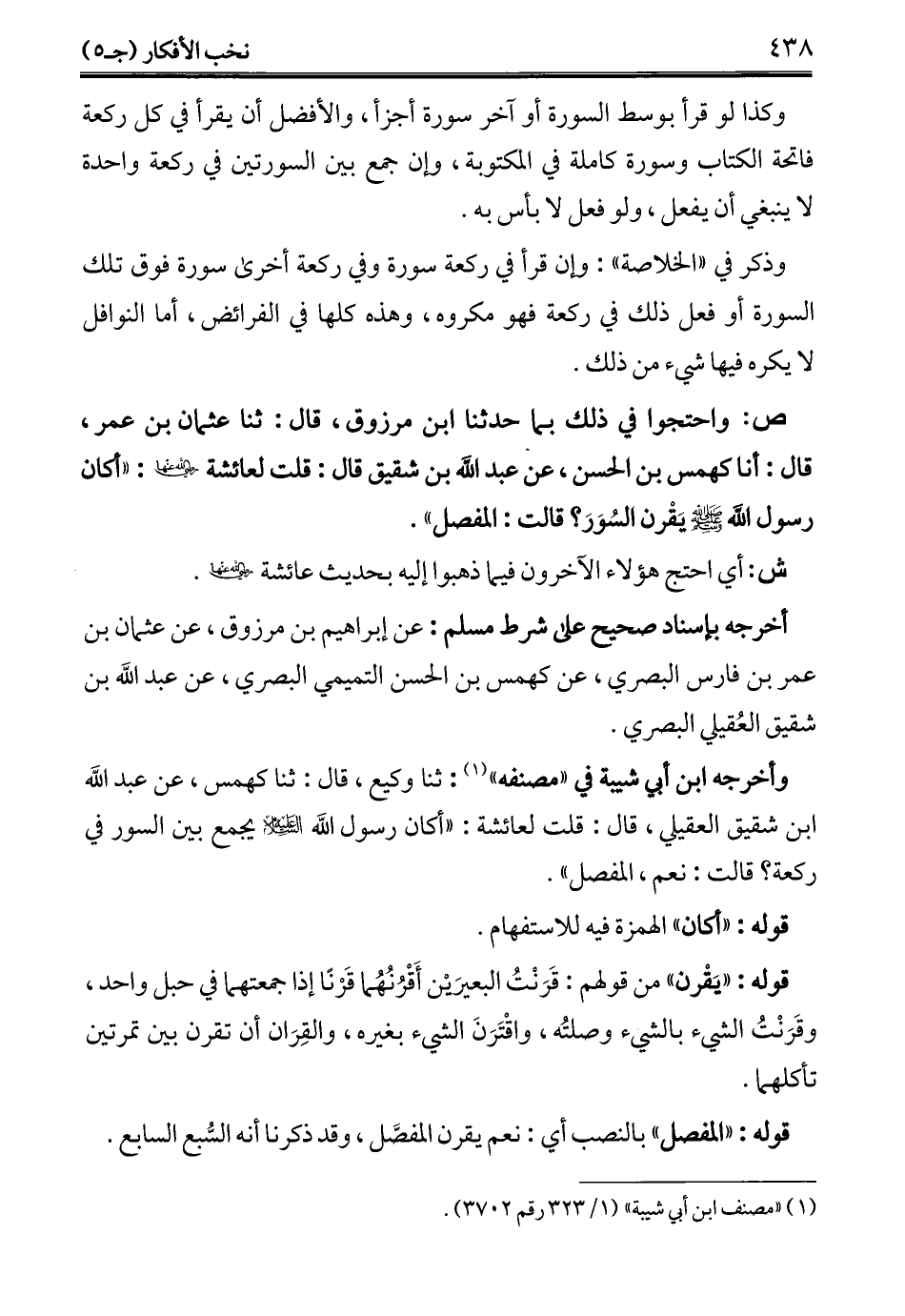 (¬1) "مصنف ابن أبي شيبة" (1/ 323 رقم 3702).