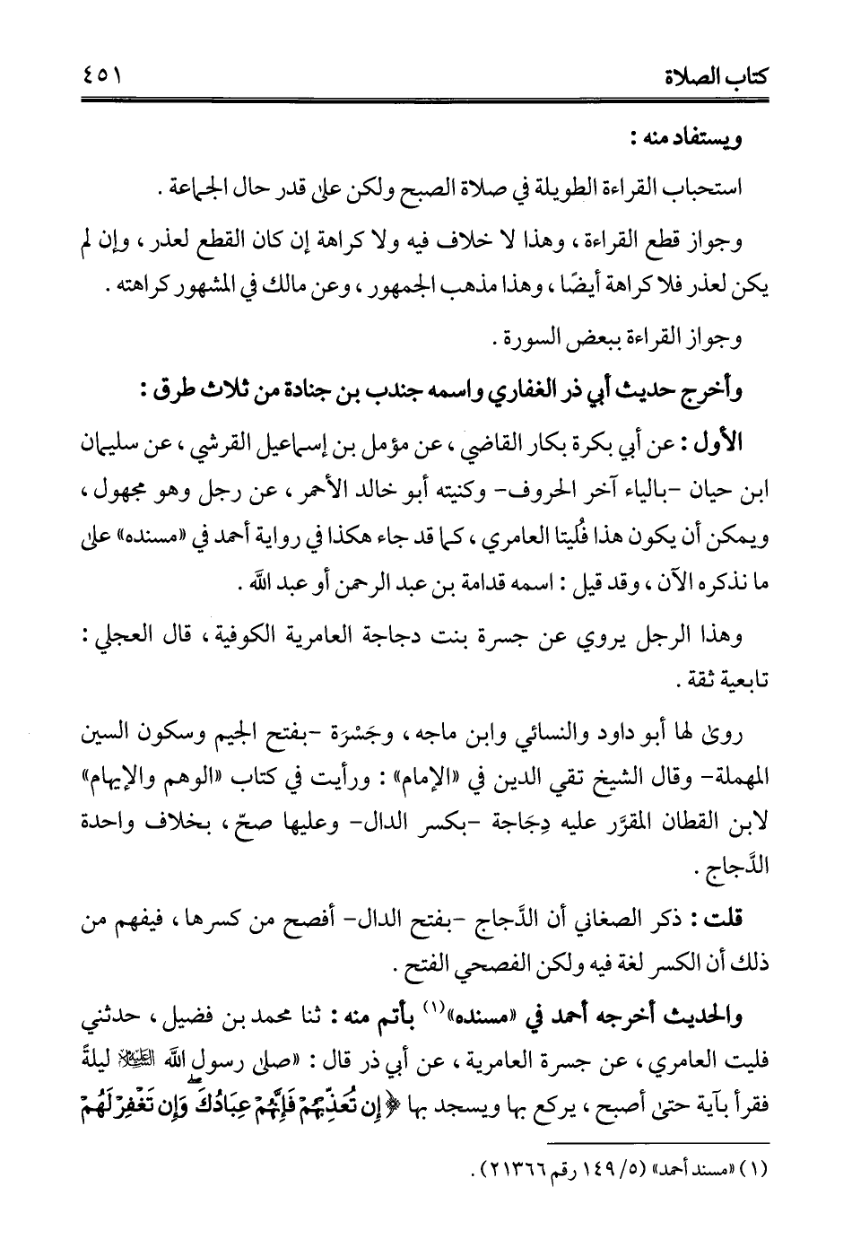 (¬1) "مسند أحمد" (5/ 149 رقم 21366).