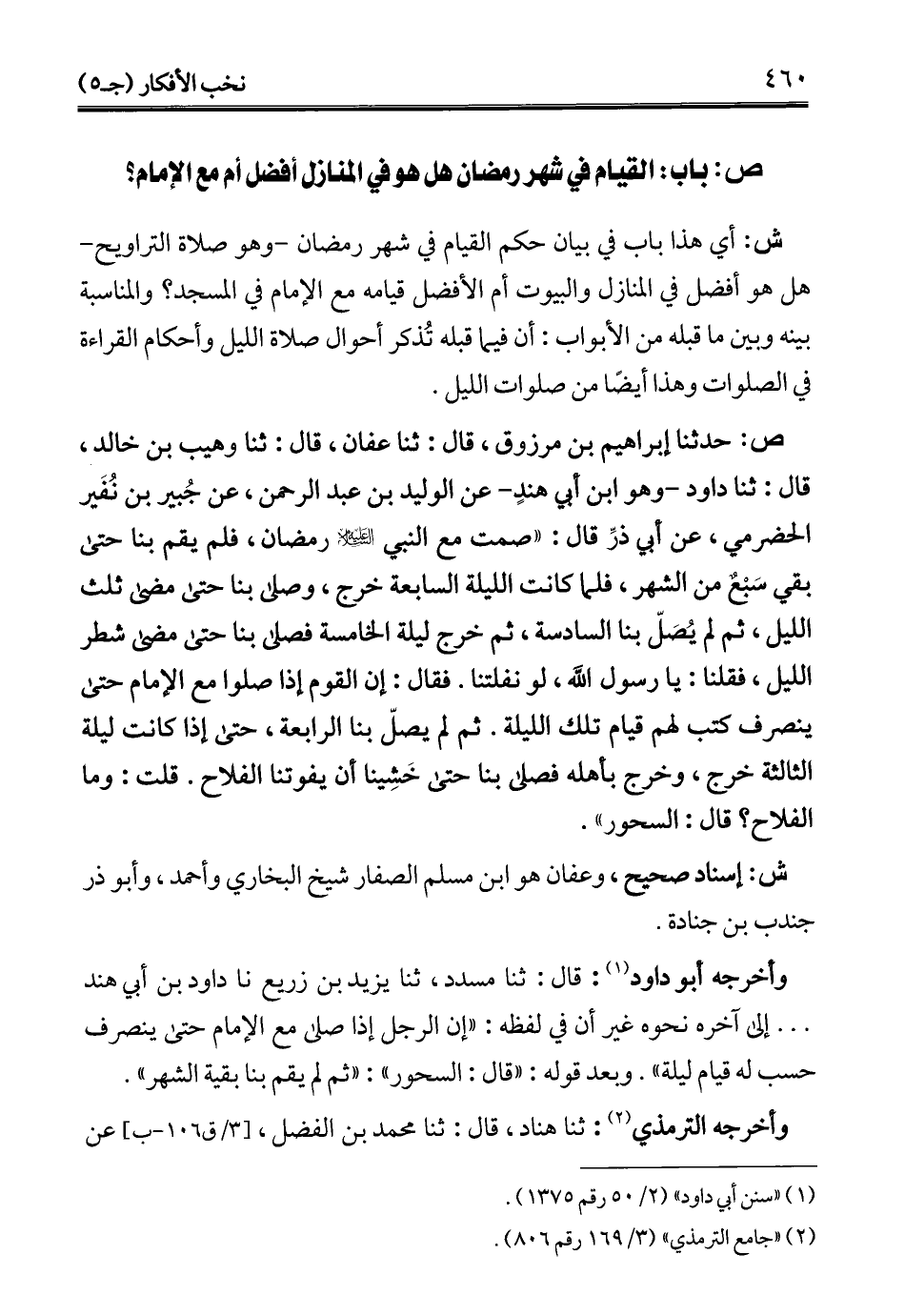 ص: باب: القيام في شهر رمضان هل هو في المنازل أفضل أم مع الإمام؟