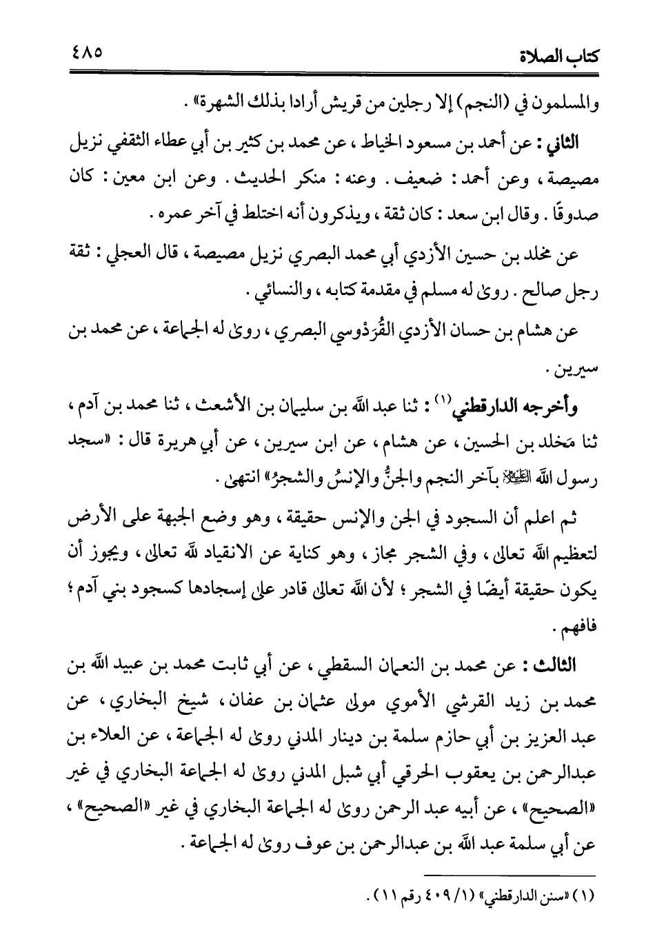 وأخرجه الدارقطني (¬1): ثنا عبد الله بن سليمان بن الأشعث، ثنا محمَّد بن آدم، ثنا مَخلد بن الحسين، عن هشام، عن ابن سيرين، عن أبي هريرة قال: "سجد رسول الله - عليه السلام - بآخر النجم والجنُّ والإنس والشجرُ" انتهى.
