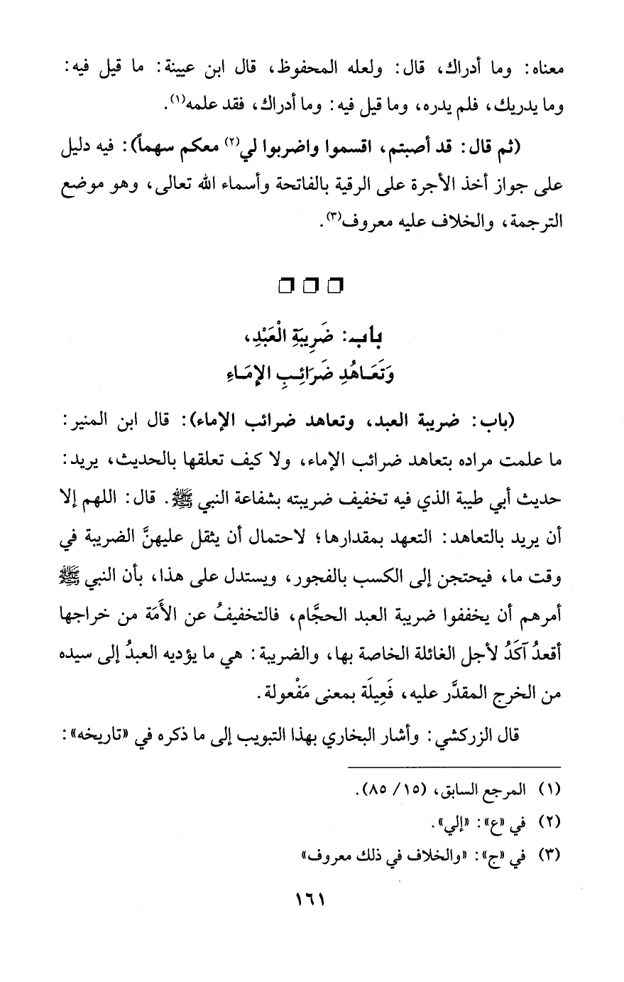 (باب: ضريبة العبد، وتعاهد ضرائب الإماء): قال ابن المنير: ما علمت مراده بتعاهد ضرائب الإماء، ولا كيف تعلقها بالحديث، يريد: حديث أبي طيبة الذي فيه تخفيف ضريبته بشفاعة النبي - صلى الله عليه وسلم -. قال: اللهم إلا أن يريد بالتعاهد: التعهد بمقدارها؛ لاحتمال أن يثقل عليهنَّ الضريبة في وقت ما، فيحتجن إلى الكسب بالفجور، ويستدل على هذا، بأن النبي - صلى الله عليه وسلم - أمرهم أن يخففوا ضريبة العبد الحجَّام، فالتخفيفُ عن الأَمَة من خراجها أقعدُ آكَدُ لأجل الغائلة الخاصة بها، والضريبة: هي ما يؤديه العبدُ إلى سيده من الخرج المقدَّر عليه، فَعِيلَة بمعنى مَفْعولة.