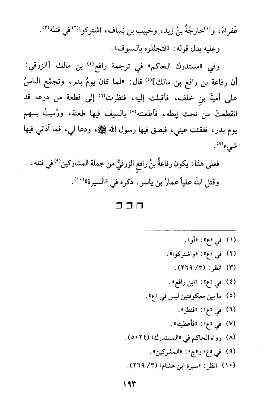 فعلى هذا: يكون رفاعةُ بنُ رافعٍ الزرقيُّ من جملة المشاركين (¬9) في قتله.