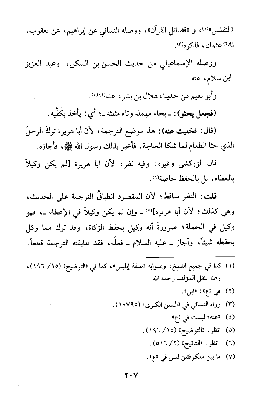 قال الزركشي وغيره: وفيه نظر؛ لأن أبا هريرة [لم يكن وكيلاً بالعطاء، بل بالحفظ خاصة (¬6).