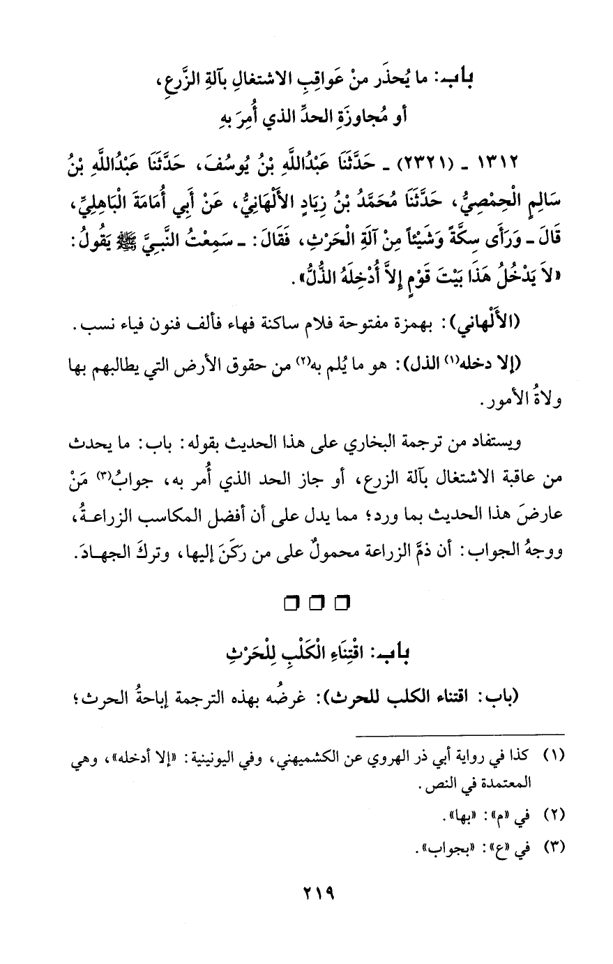 باب: ما يُحذَر منْ عَواقِبِ الاشتغالِ بآلةِ الزَّرعِ، أو مُجاوزَةِ الحدِّ الذي أُمِرَ بهِ
