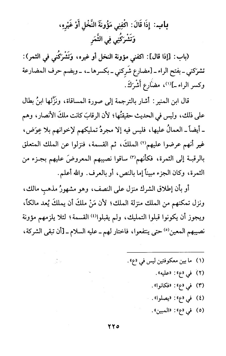 (باب: [إذا قال]: اكفني مؤونة النخل أو غيره، وَتَشْرَكُني في الثمر): تشرَكني -بفتح الراء-[مضارع شَرِكني -بكسرها-، -وبضم حرف المضارعة وكسر الراء-] (¬1)، مضارع أَشْرَكَ.