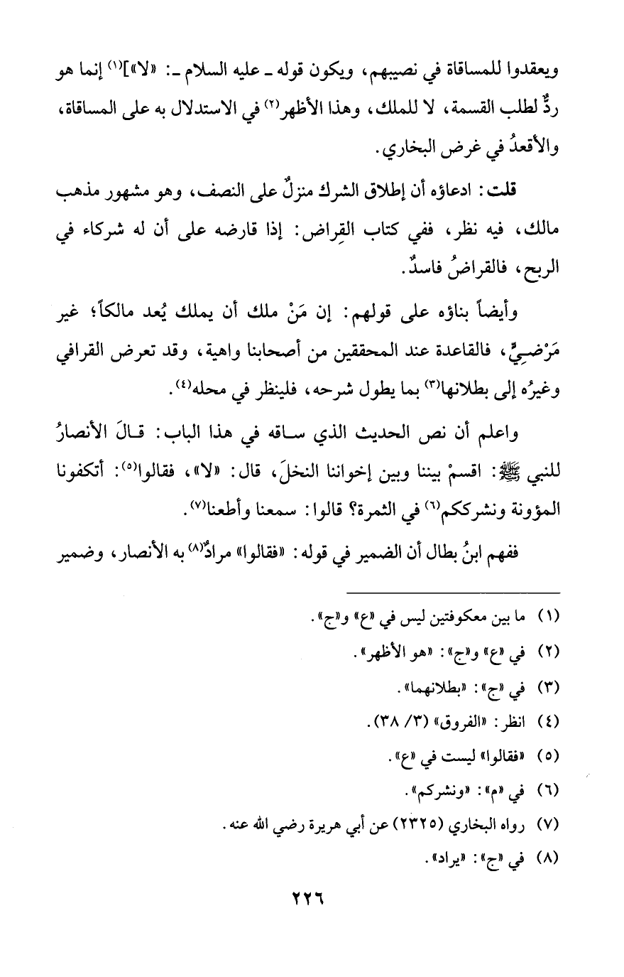 قلت: ادعاؤه أن إطلاق الشرك منزلٌ على النصف، وهو مشهور مذهب مالك، فيه نظر، ففي كتاب القِراض: إذا قارضه على أن له شركاء في الربح، فالقراضُ فاسدٌ.