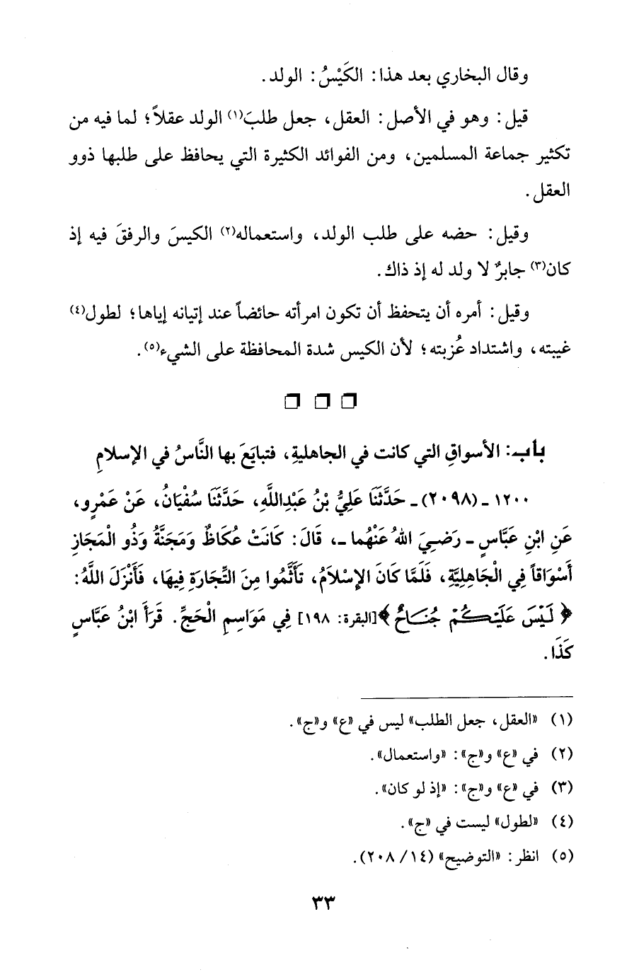 وقال البخاري بعد هذا: الكَيْسُ: الولد.