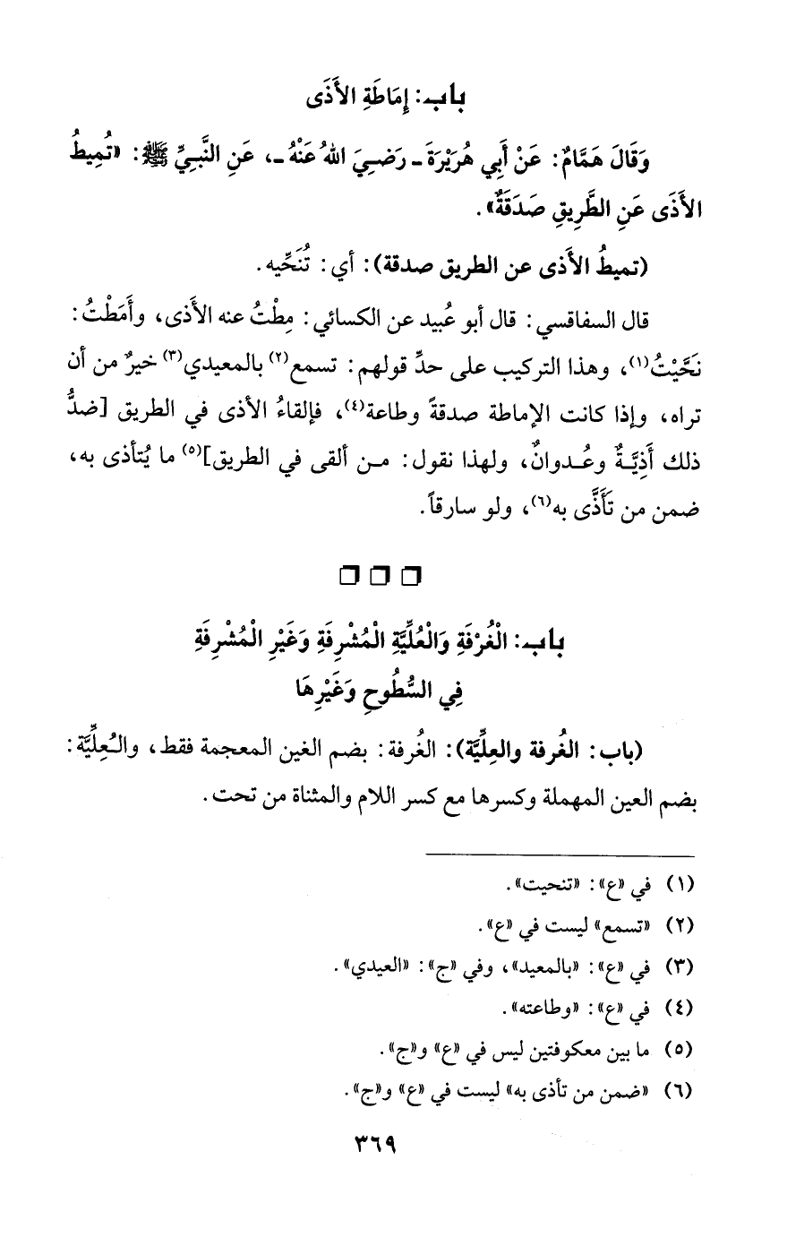 وَقَالَ هَمَّامٌ: عَنْ أَبِي هُرَيْرَةَ -رَضِيَ اللهُ عَنْهُ-، عَنِ النَّبِيِّ - صلى الله عليه وسلم -: "تُمِيطُ الأَذَى عَنِ الطَّرِيقِ صَدَقَةٌ".