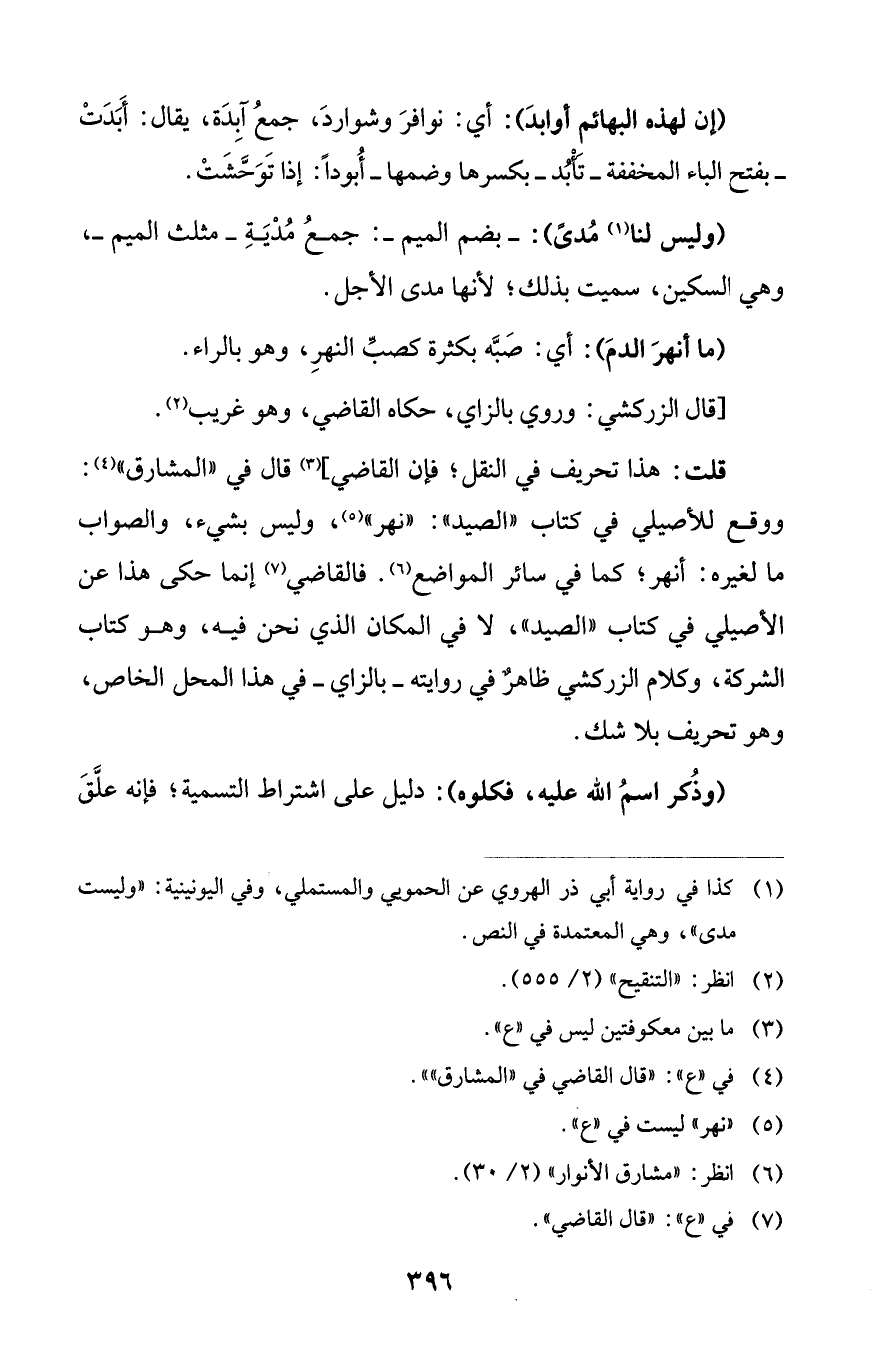 قلت: هذا تحريف في النقل؛ فإن القاضي] (¬3) قال في "المشارق" (¬4): ووقع للأصيلي في كتاب "الصيد": "نهر" (¬5)، وليس بشيء، والصواب ما لغيره: أنهر؛ كما في سائر المواضع (¬6). فالقاضي (¬7) إنما حكى هذا عن الأصيلي في كتاب "الصيد"، لا في المكان الذي نحن فيه، وهو كتاب الشركة، وكلام الزركشي ظاهرٌ في روايته -بالزاي- في هذا المحل الخاص، وهو تحريف بلا شك.
