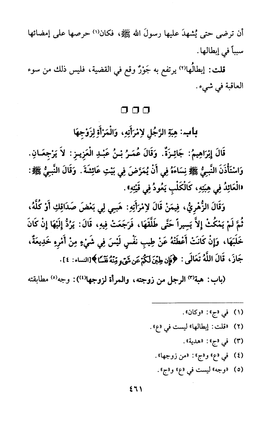 باب: هِبَةِ الرَّجُلِ لاِمْرَأَتِهِ، وَالْمَرْأَةِ لِزَوْجِهَا