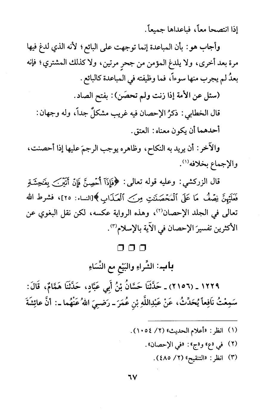قال الخطابي: ذكرُ الإحصان فيه غريب مشكلٌ جداً، وله وجهان: أحدهما أن يكون معناه: العتق.