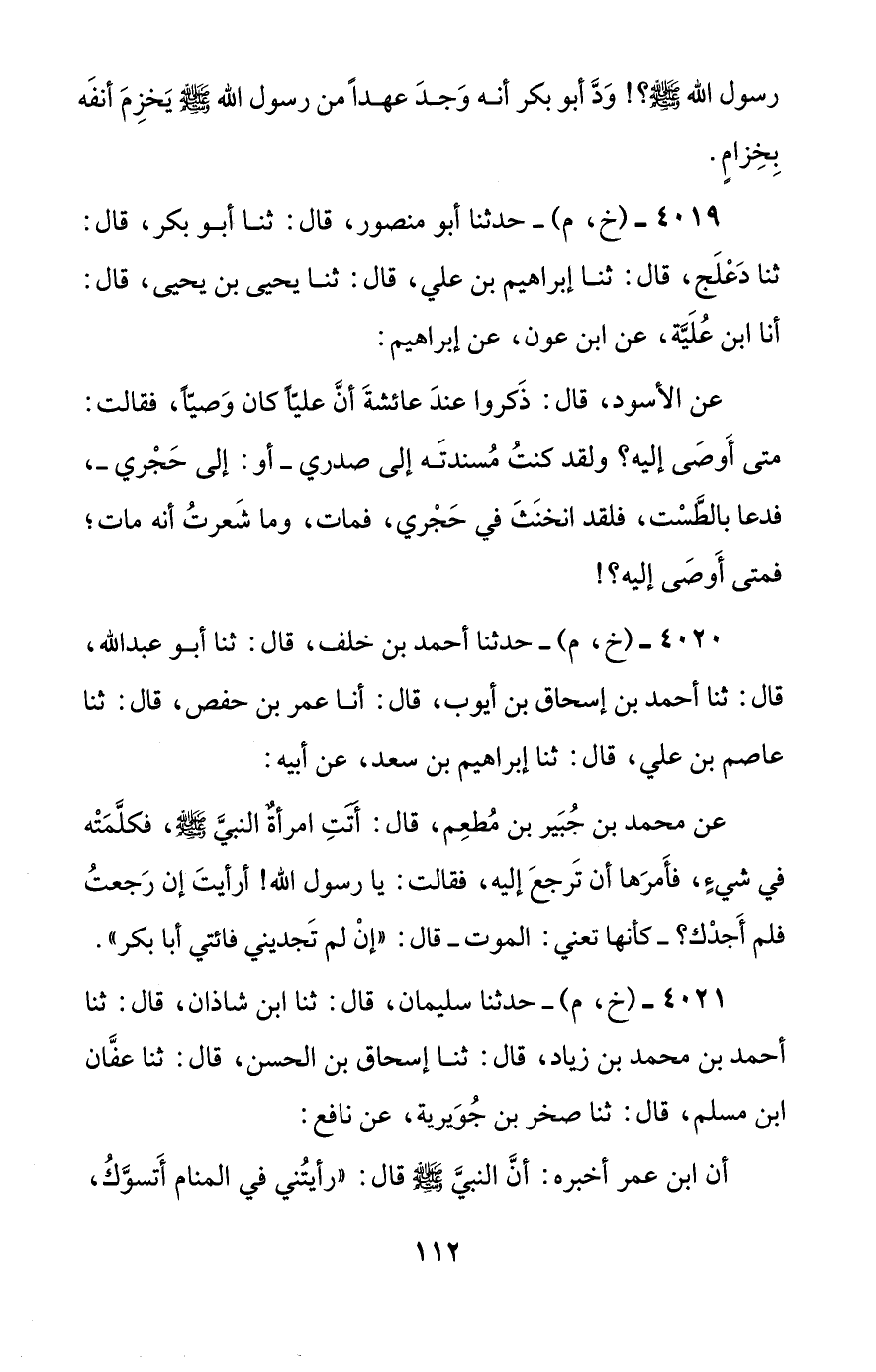 4020 - (خ، م) - حدثنا أحمد بن خلف، قال: ثنا أبو عبد الله، قال: ثنا أحمد بن إسحاق بن أيوب، قال: أنا عمر بن حفص، قال: ثنا عاصم بن علي، قال: ثنا إبراهيم بن سعد، عن أبيه: