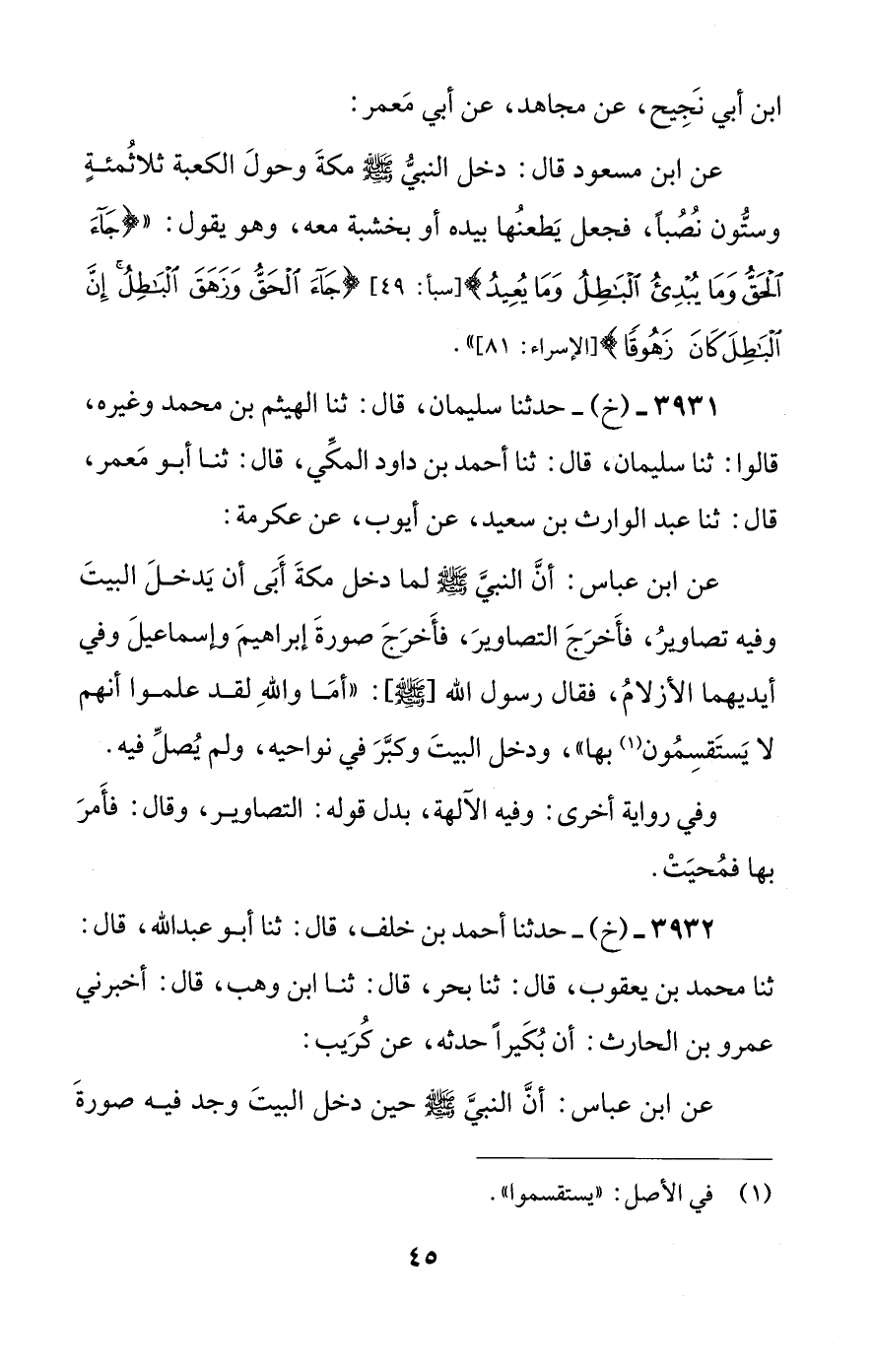3931 - (خ) - حدثنا سليمان، قال: ثنا الهيثم بن محمد وغيره، قالوا: ثنا سليمان، قال: ثنا أحمد بن داود المكي، قال: ثنا أبو معمر، قال: ثنا عبد الوارث بن سعيد، عن أيوب، عن عكرمة:
