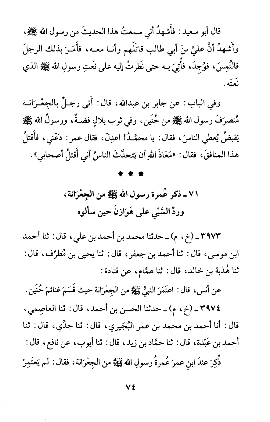 [71] ذكر عمرة رسول الله صلى الله عليه وسلم من الجعرانة، ورد السبي على هوازن حين سألوه