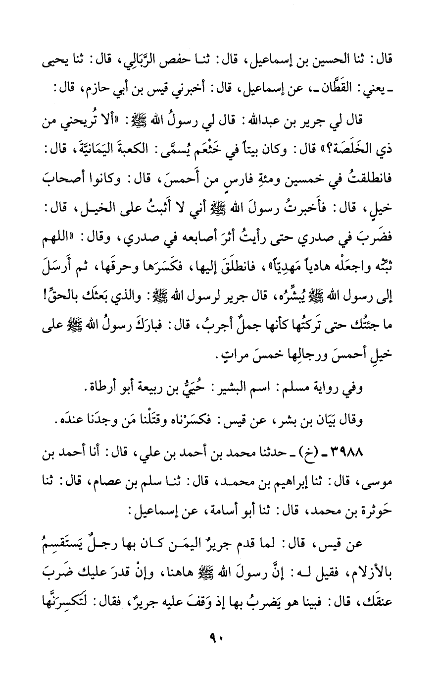 3988 - (خ) - حدثنا محمد بن أحمد بن علي، قال: أنا أحمد بن موسى، قال: ثنا إبراهيم بن محمد، قال: ثنا سلم بن عصام، قال: ثنا حوثرة بن محمد، قال: ثنا أبو أسامة، عن إسماعيل: