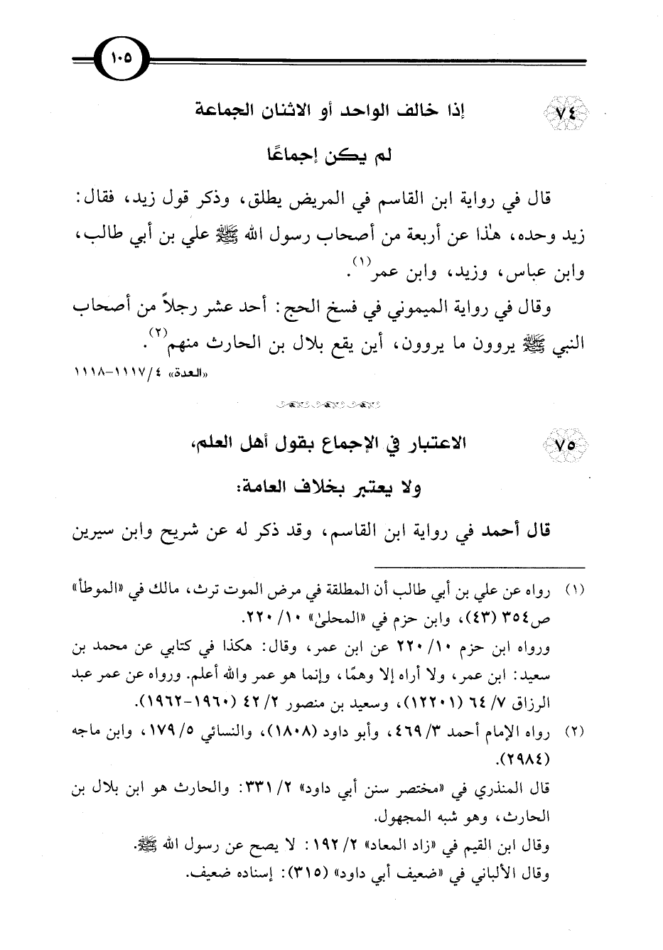 74 - إذا خالف الواحد أو الاثنان الجماعة لم يكن إجماعًا