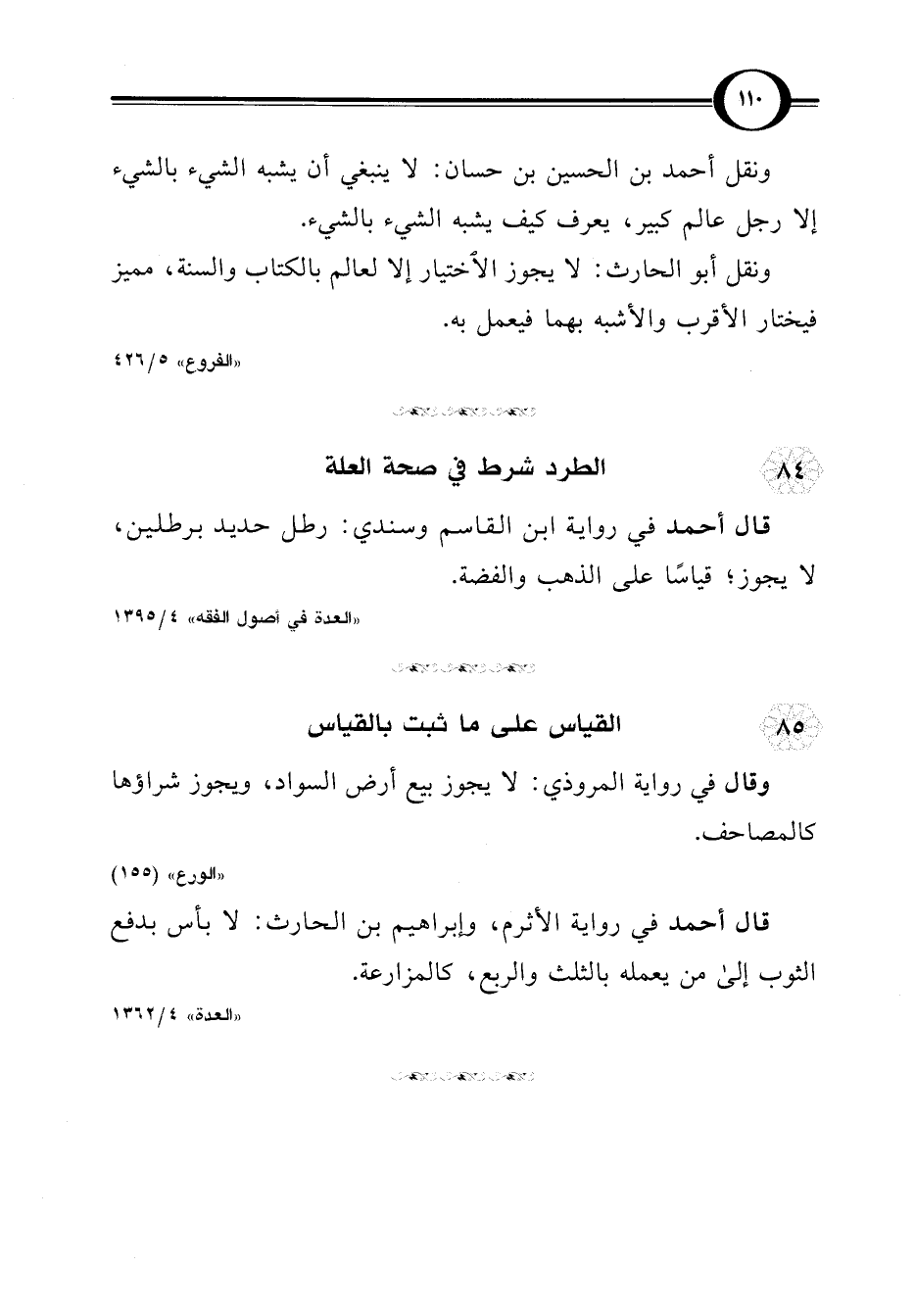 ونقل أحمد بن الحسين بن حسان: لا ينبغي أن يشبه الشيء بالشيء إلا رجل عالم كبير، يعرف كيف يشبه الشيء بالشيء.