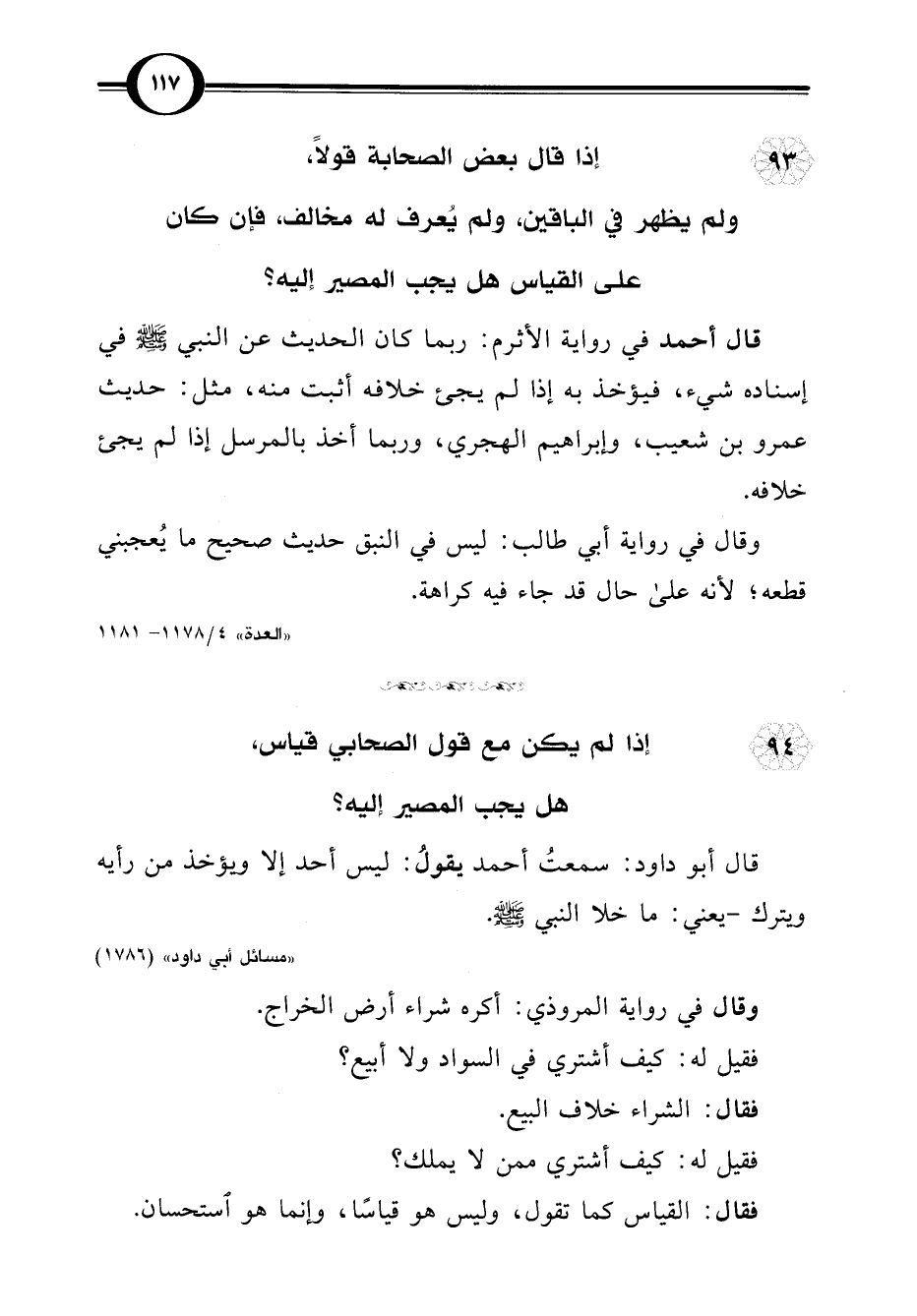 94 - إذا لم يكن مع قول الصحابي قياس، هل يجب المصير إليه؟