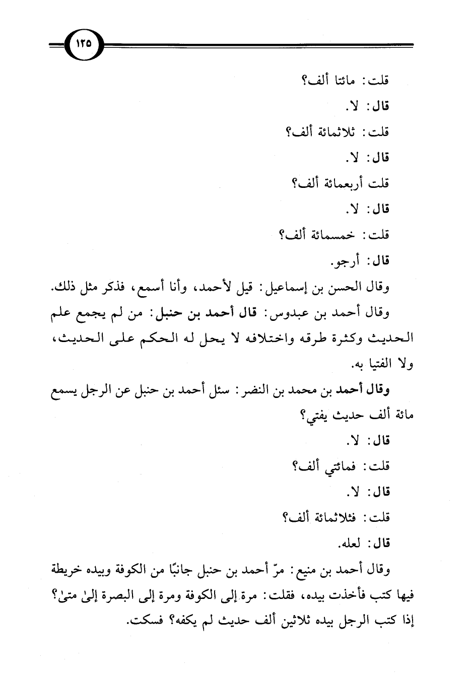 وقال أحمد بن محمد بن النضر: سئل أحمد بن حنبل عن الرجل يسمع مائة ألف حديث يفتي؟