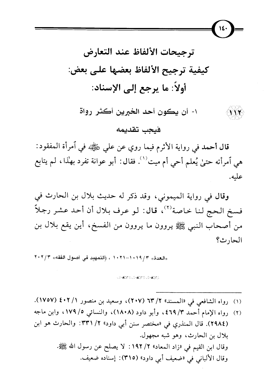 112 - 1 - أن يكون أحد الخبرين أكثر رواة فيجب تقديمه