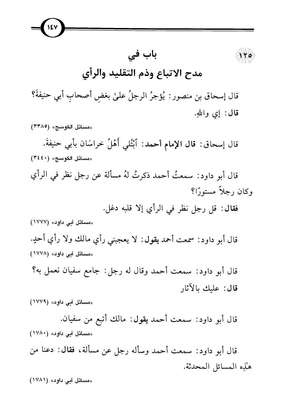 125 - باب في مدح الاتباع وذم التقليد والرأي