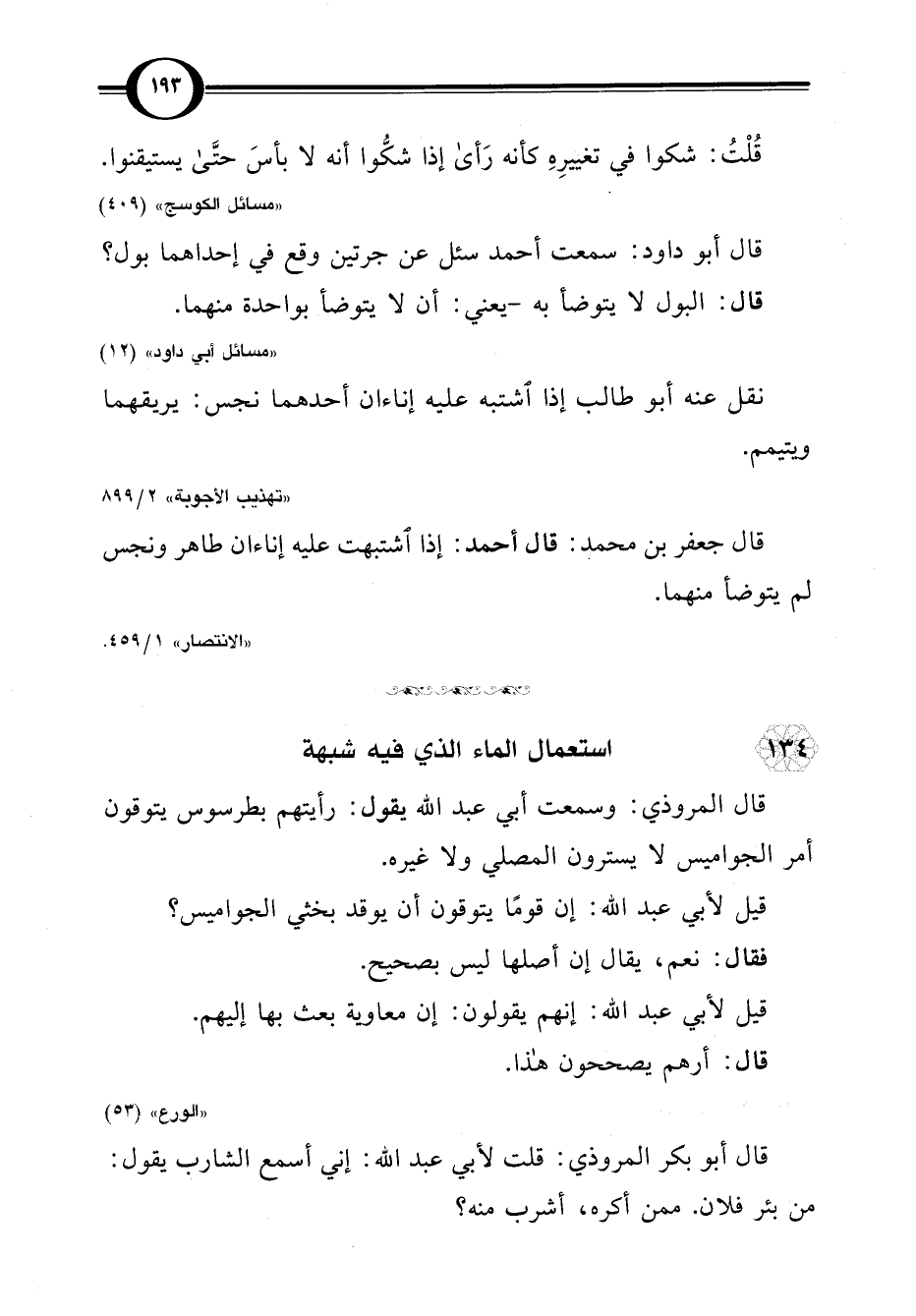 134 - استعمال الماء الذي فيه شبهة