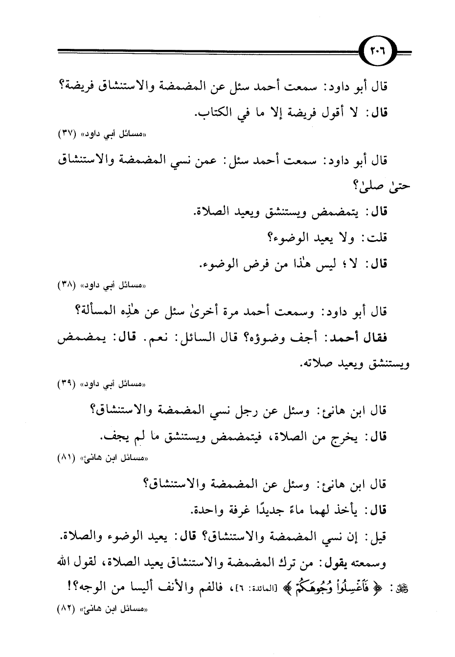 قال أبو داود: سمعت أحمد سئل عن المضمضة والاستنشاق فريضة؟