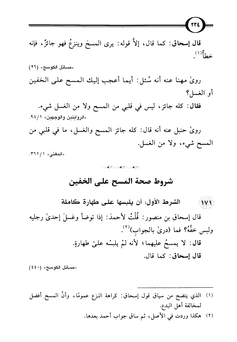 (¬1) الذي يتضح من سياق قول إسحاق: كراهة النزع عمومًا، وأنَّ المسح أفضل لمخالفة أهل البدع.