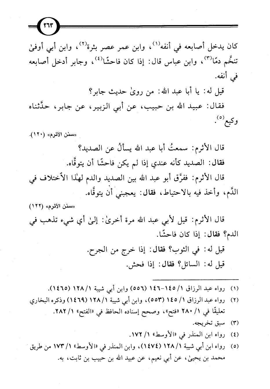 كان يدخل أصابعه في أنفه (¬1)، وابن عمر عصر بثرة (¬2)، وابن أبي أوفى تنخَّم دمًا (¬3)، وابن عباس قال: إذا كان فاحشًا (¬4)، وجابر أدخل أصابعه في أنفه.
