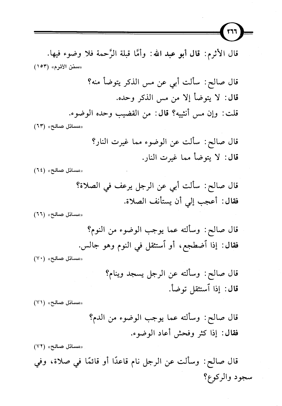 قال صالح: وسألت عن الرجل نام قاعدًا أو قائمًا في صلاة، وفي سجود والركوع؟