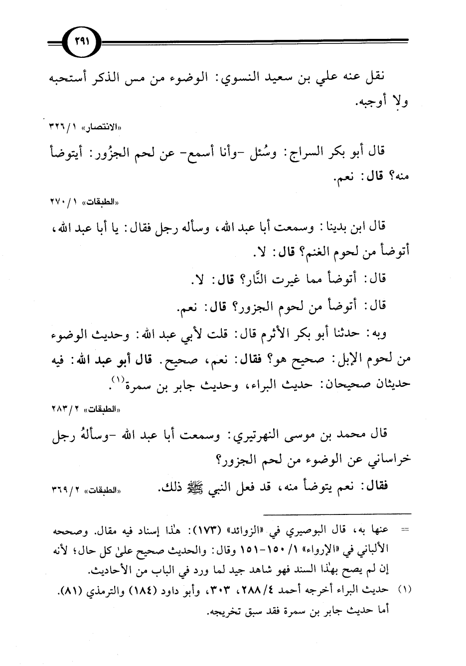 (¬1) حديث البراء أخرجه أحمد 4/ 288، 303، وأبو داود (184) والترمذي (81). أما حديث جابر بن سمرة ففد سبق تخريجه.
