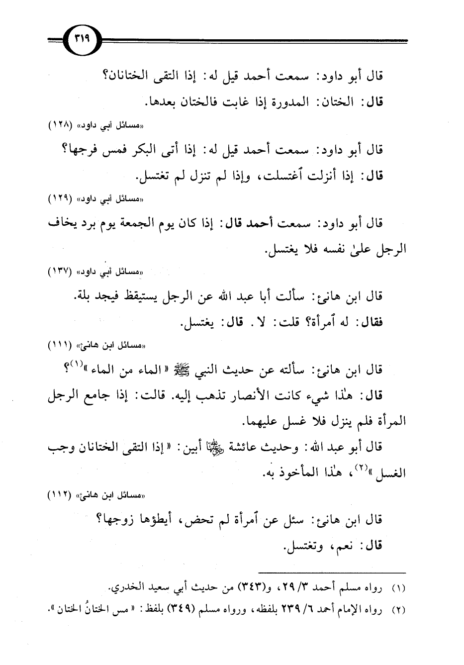 قال ابن هانئ: سألته عن حديث النبي -صلى اللَّه عليه وسلم- "الماء من الماء" (¬1)؟