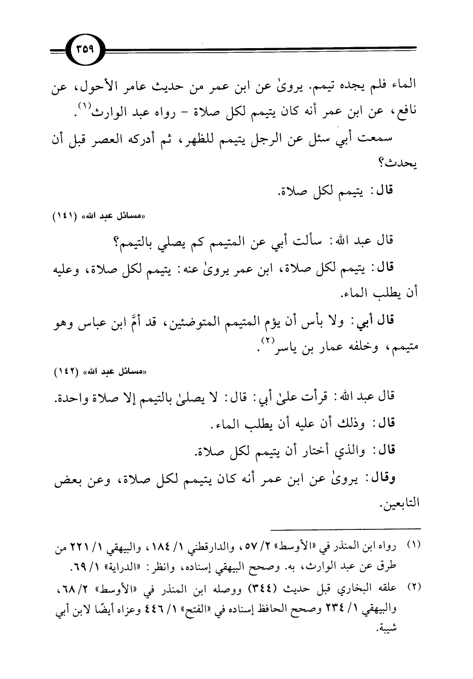 قال عبد اللَّه: سألت أبي عن المتيمم كم يصلي بالتيمم؟