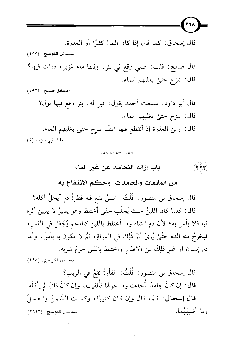 قال إسحاق: كما قال إذا كان الماءُ كثيرًا أو العذرة.