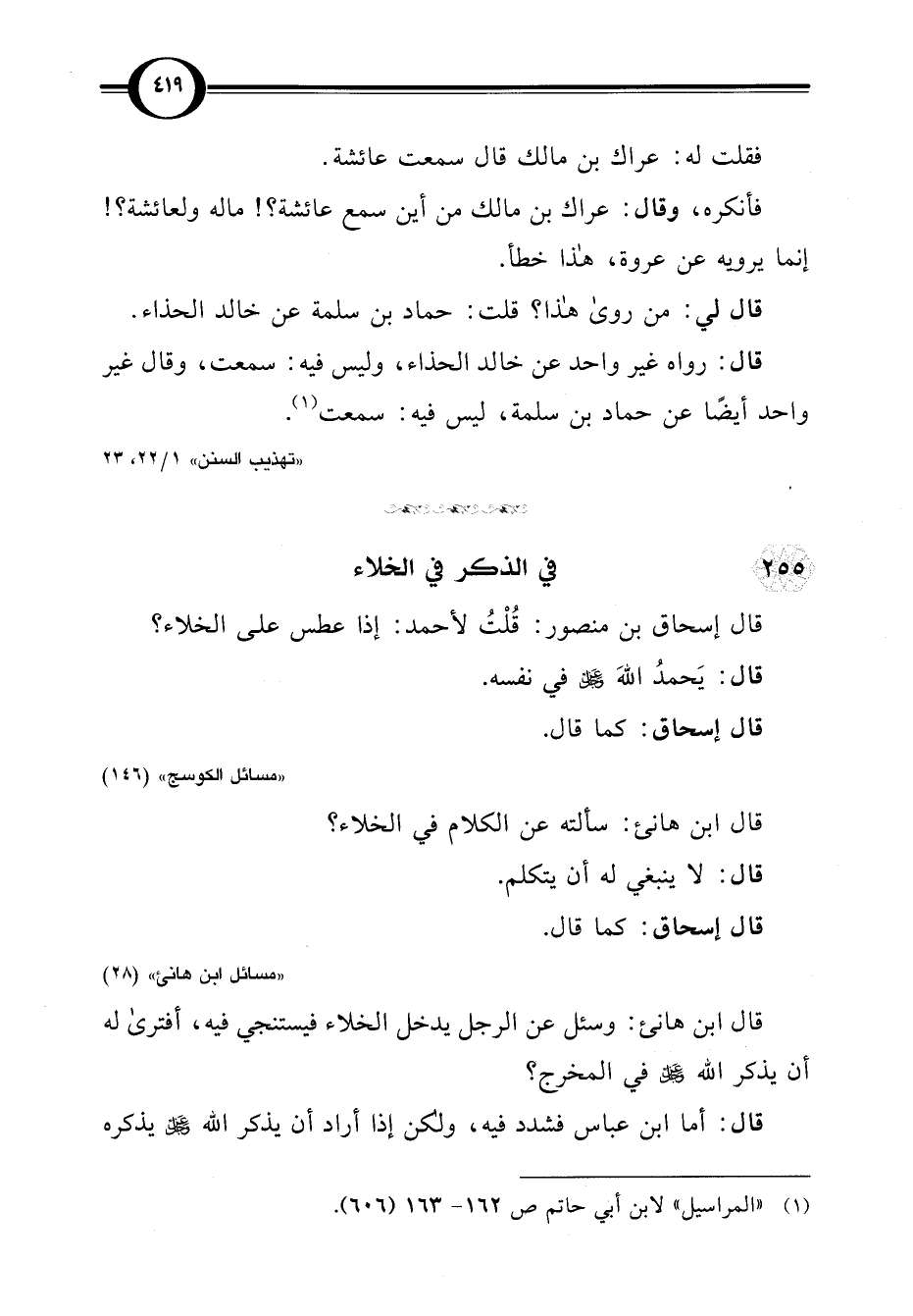 (¬1) "المراسيل" لابن أبي حاتم ص 162 - 163 (606).