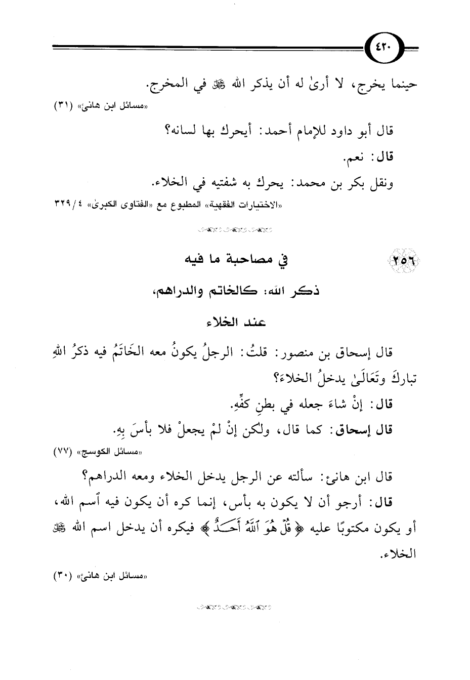 256 - في مصاحبة ما فيه ذكر اللَّه: كالخاتم والدراهم، عند الخلاء
