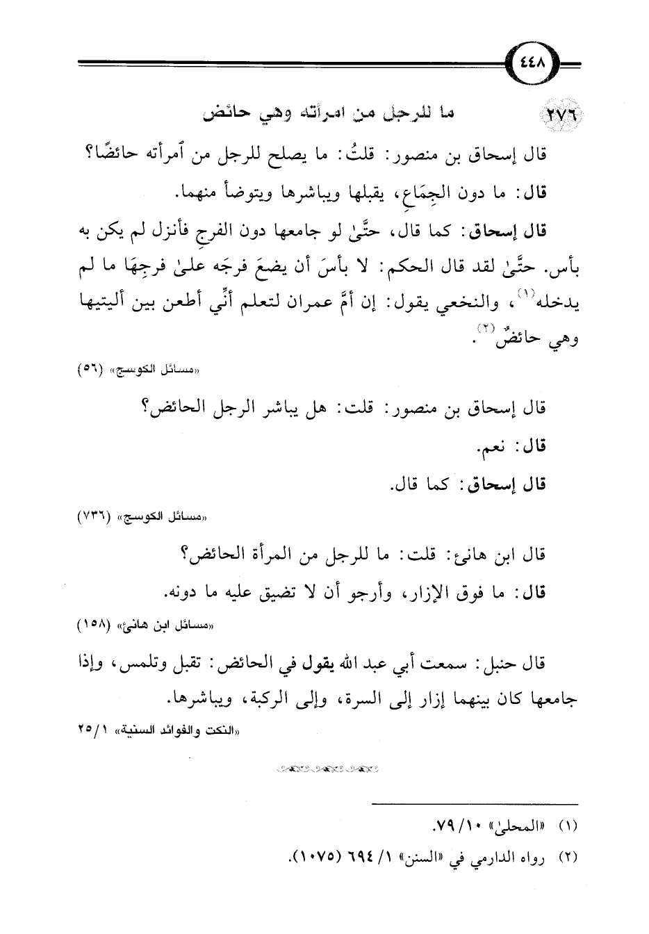 قال إسحاق بن منصور: قلتُ: ما يصلح للرجل من امرأته حائضًا؟
