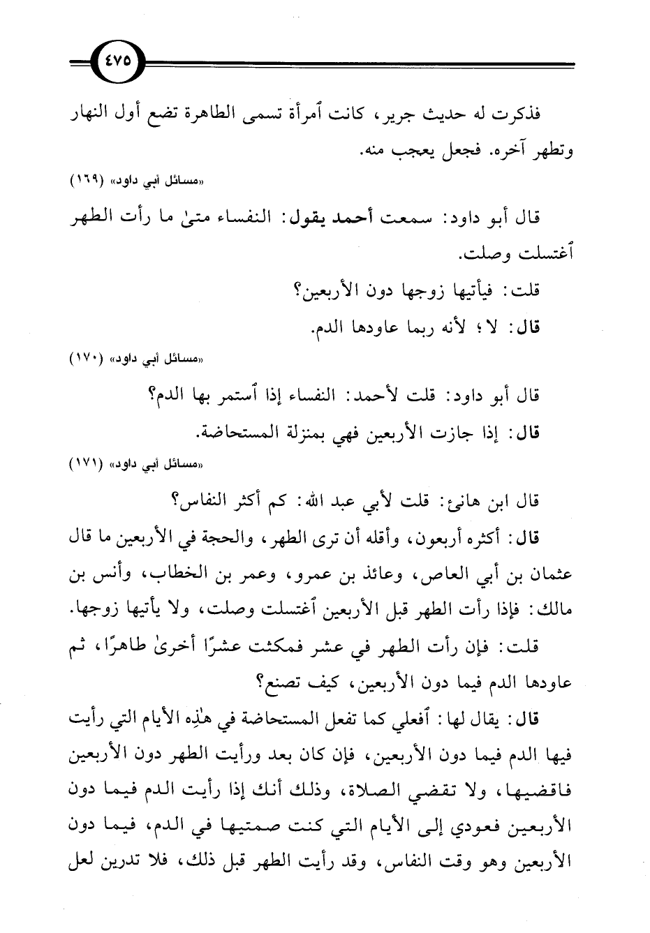 قال أبو داود: قلت لأحمد: النفساء إذا استمر بها الدم؟