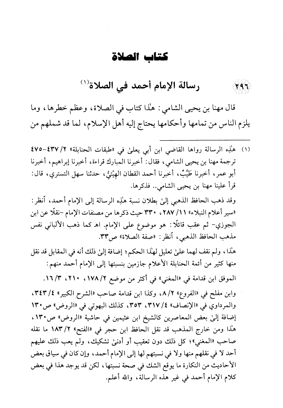 296 - رسالة الإمام أحمد في الصلاة (¬1)