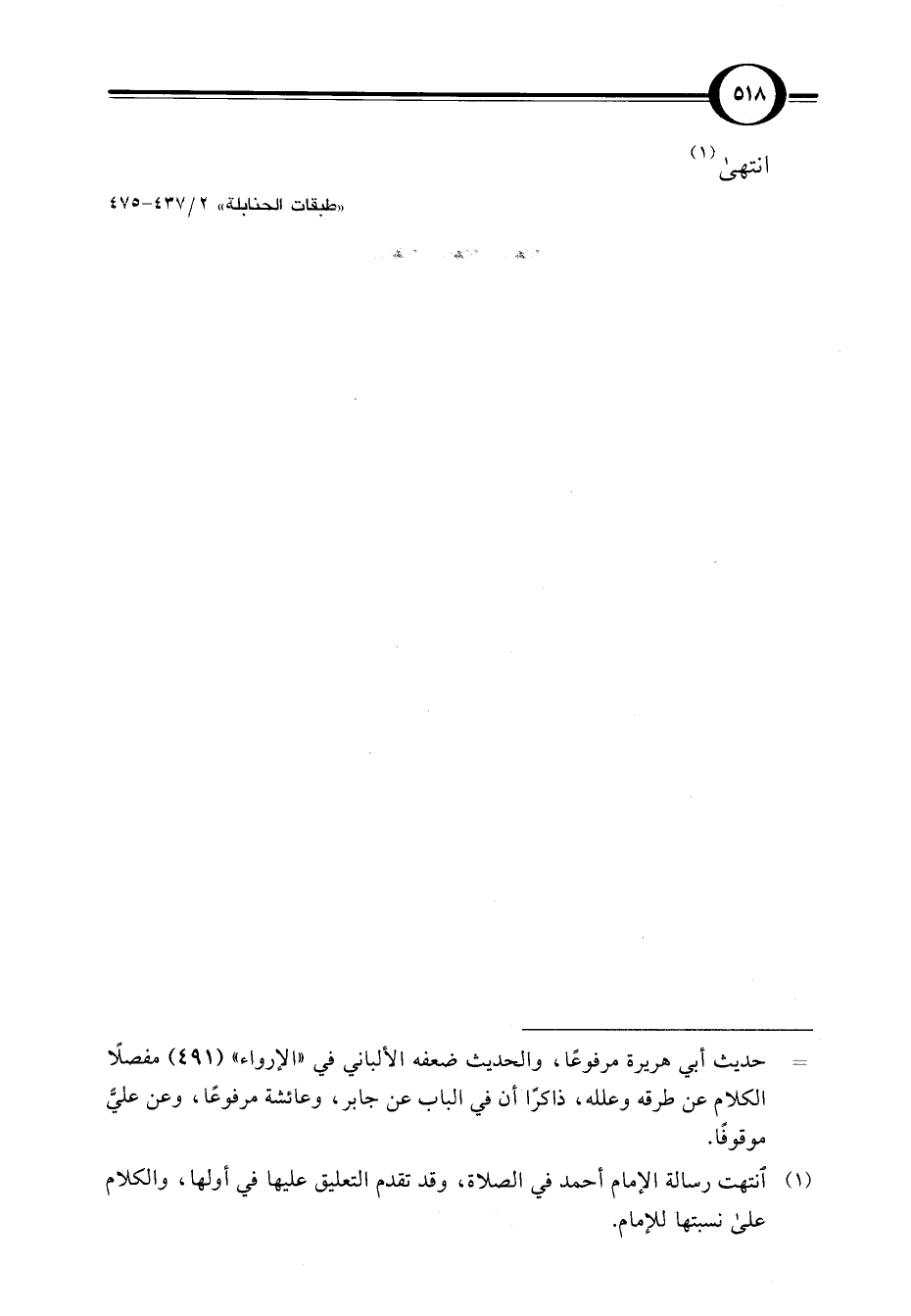 (¬1) انتهت رسالة الإمام أحمد في الصلاة، وقد تقدم التعليق عليها في أولها، والكلام على نسبتها للإمام.